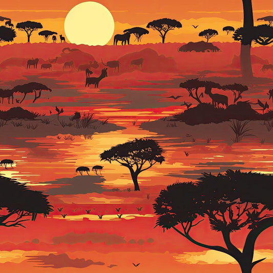 African Safari Sunset Pattern 1 Quilting Cotton Fabric