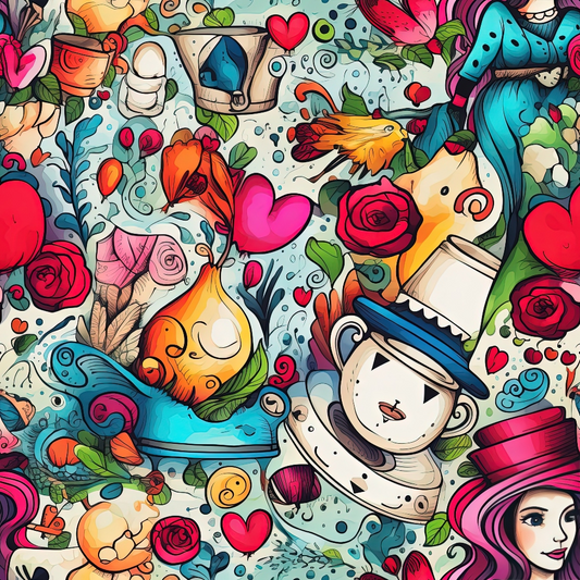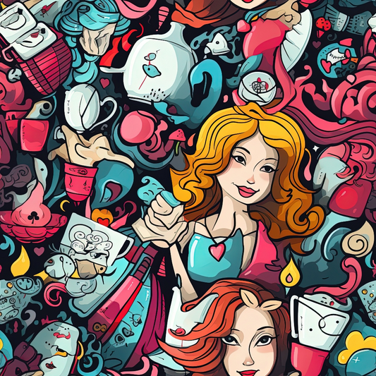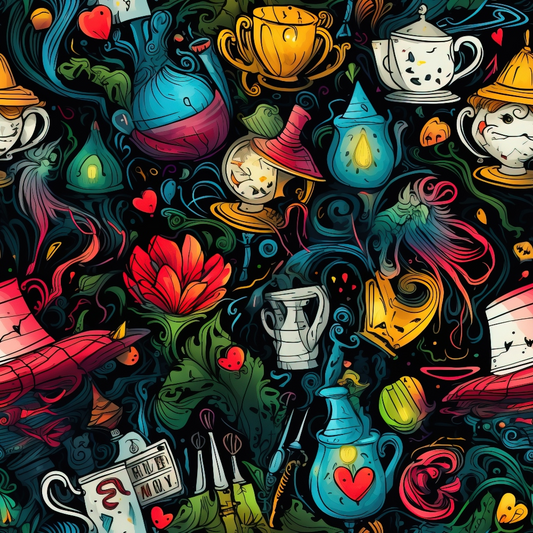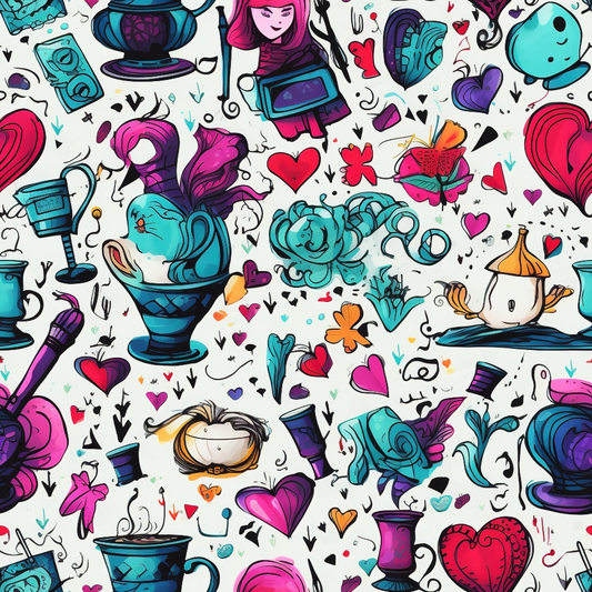 Abstract Alice in Wonderland Pattern 4 Quilting Cotton Fabric
