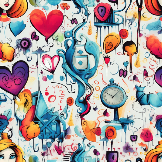 Abstract Alice in Wonderland Pattern 9 Quilting Cotton Fabric