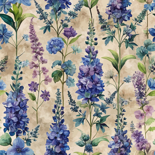 Art Nouveau Delphiniums Pattern 1 Quilting Cotton Fabric