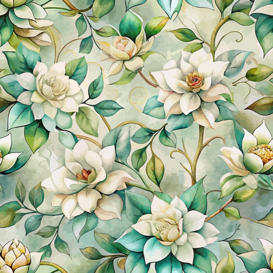 Art Nouveau Gardenias Pattern 2 Quilting Cotton Fabric