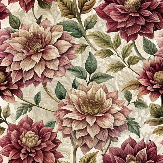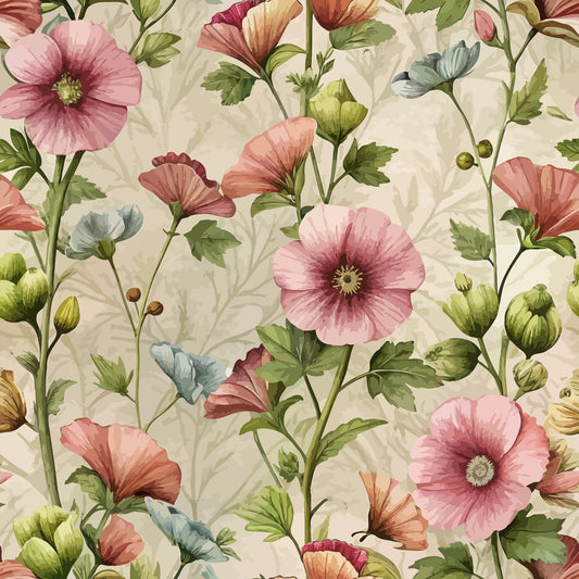 Art Nouveau Hollyhocks Pattern 2 Quilting Cotton Fabric