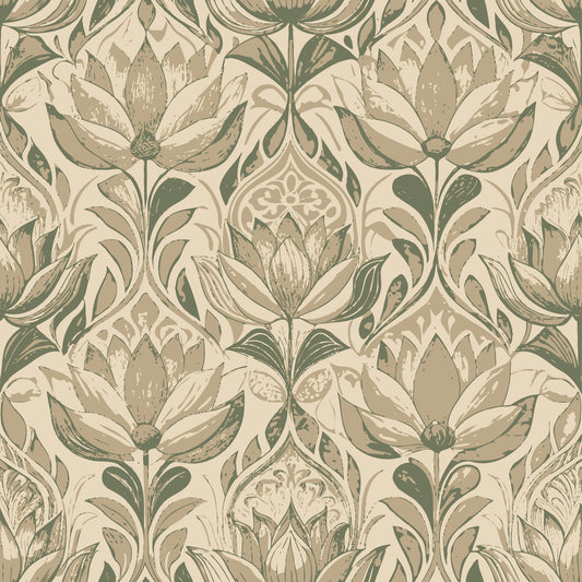 Art Nouveau Lotus Flowers Pattern 2 Quilting Cotton Fabric