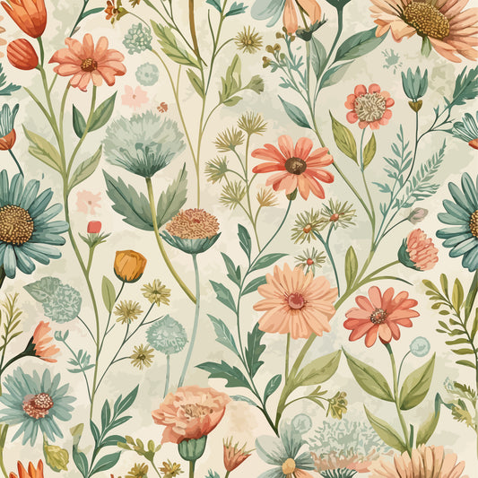 Art Nouveau Meadow Flowers Pattern 2 Quilting Cotton Fabric
