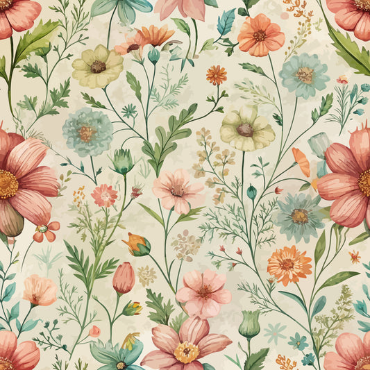Art Nouveau Meadow Flowers Pattern 1 Quilting Cotton Fabric