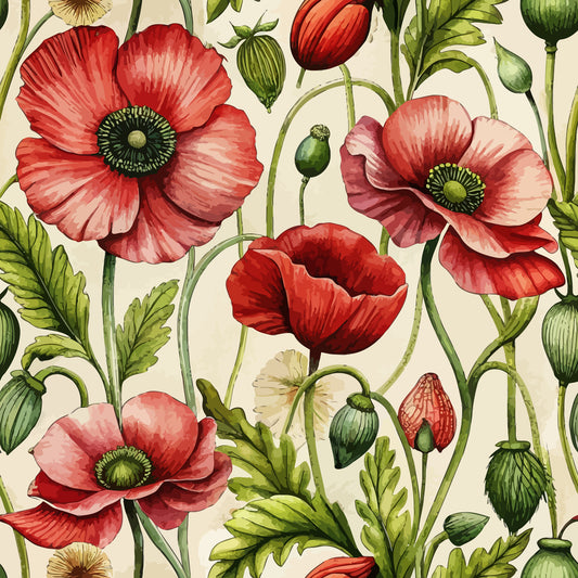 Art Nouveau Poppies Pattern 4 Quilting Cotton Fabric