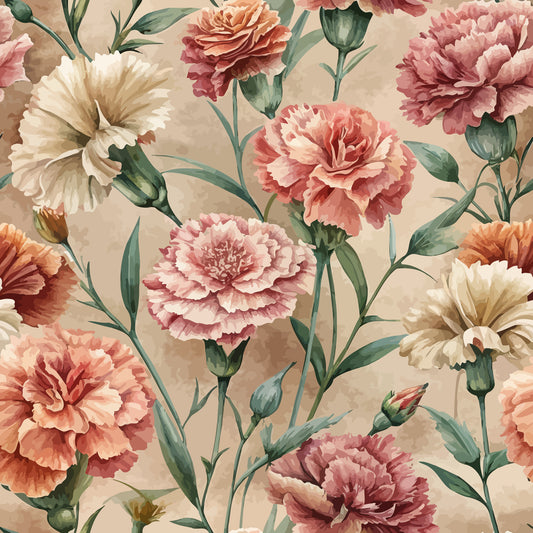 Art Nouveau Ruffled Carnations Pattern 1 Quilting Cotton Fabric