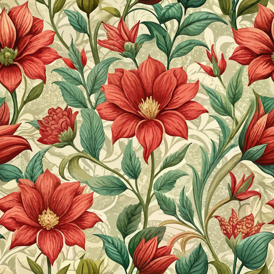 Art Nouveau Geraniums Pattern 1 Quilting Cotton Fabric