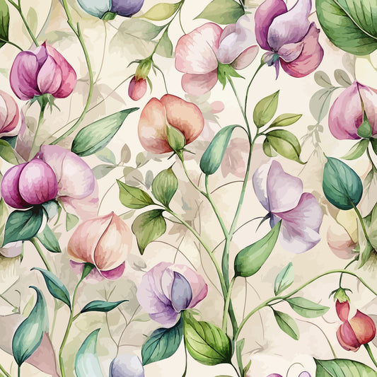 Art Nouveau Sweet Peas Pattern 1 Quilting Cotton Fabric