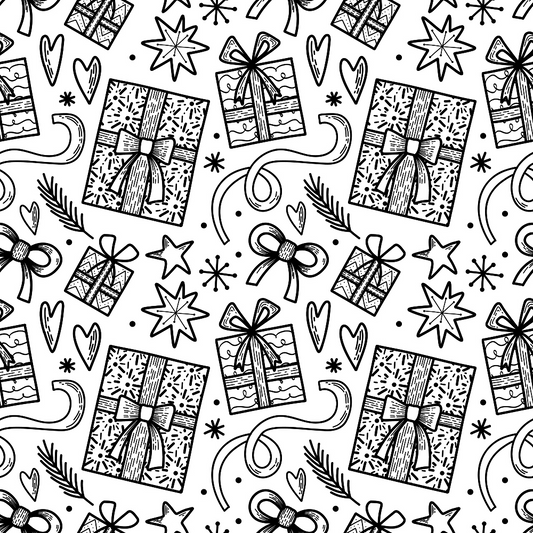 Black and White Christmas Sketches Pattern 2 Quilting Cotton Fabric