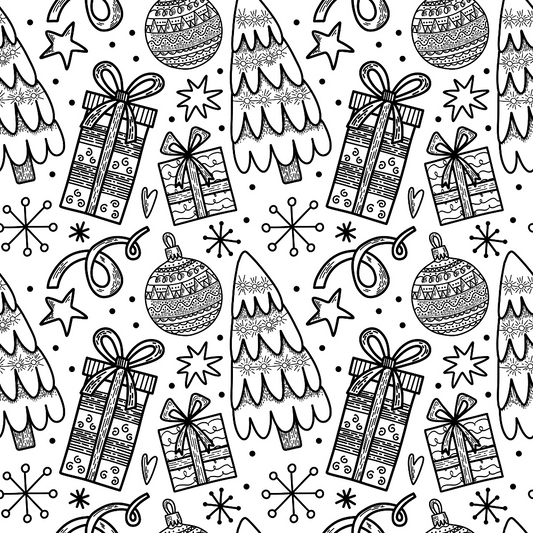 Black and White Christmas Sketches Pattern 3 Quilting Cotton Fabric