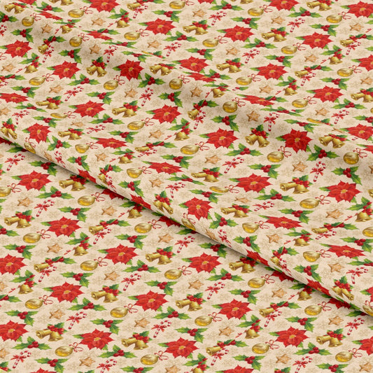 Red Gold Christmas Pattern 6 Quilting Cotton Fabric