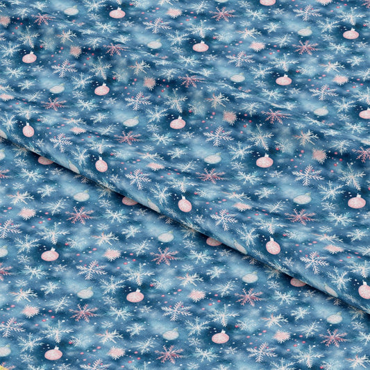 Watercolor Blue Christmas Pattern 9 Quilting Cotton Fabric