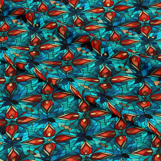 Stained Glass Christmas Pattern 22 Quilting Cotton Fabric