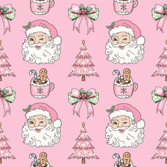 Pink Christmas Pattern 2 Quilting Cotton Fabric