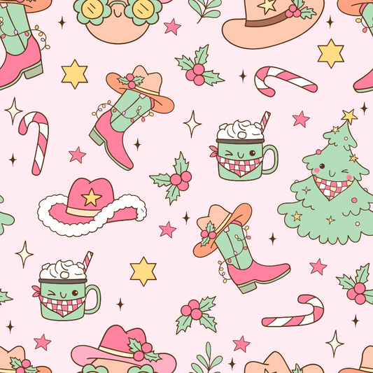 Pink Cowgirl Christmas Pattern Quilting Cotton Fabric