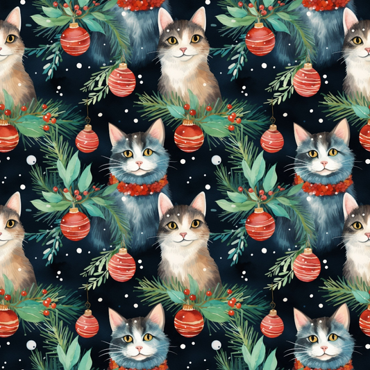 Christmas Santa Kitty Cats Pattern 6 Quilting Cotton Fabric