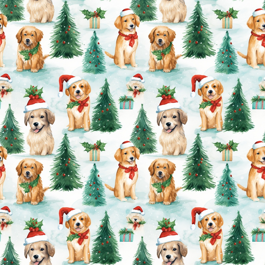 Christmas Santa Puppy Dogs Pattern 12 Quilting Cotton Fabric