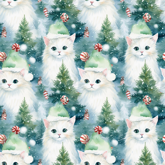 Christmas Santa Kitty Cats Pattern 12 Quilting Cotton Fabric