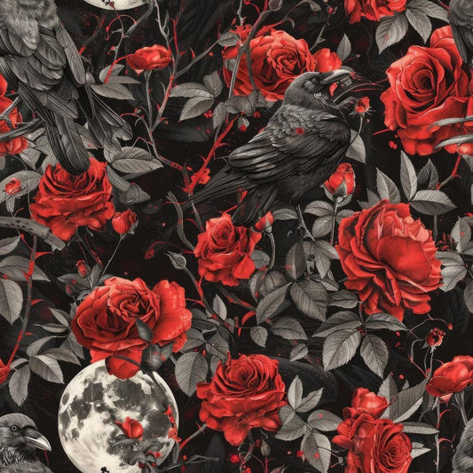 Evil Crows and Roses Pattern 12 Quilting Cotton Fabric