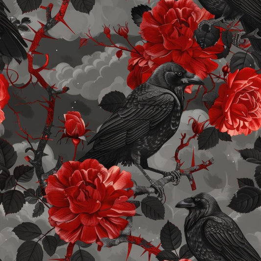 Evil Crows and Roses Pattern 1 Quilting Cotton Fabric