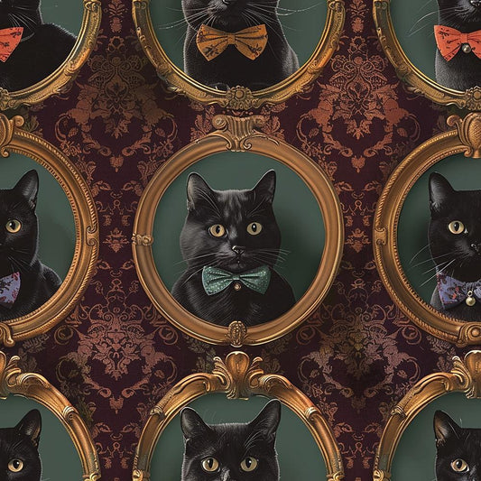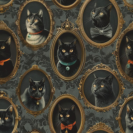 Fancy Feline Portraits Pattern 2 Quilting Cotton Fabric