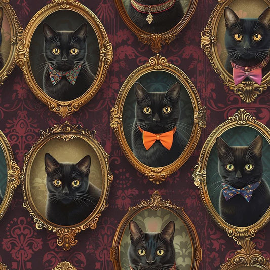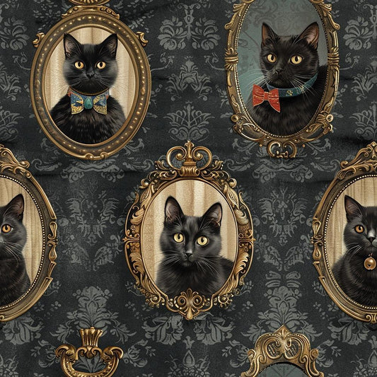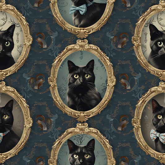 Fancy Feline Portraits Pattern 1 Quilting Cotton Fabric