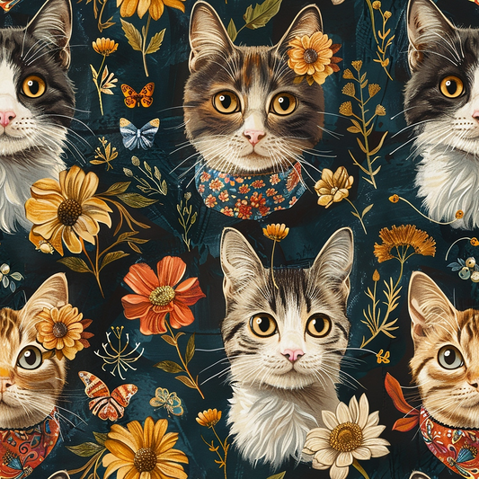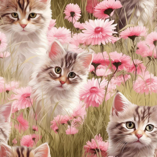 Kittens in Wildflowers Pattern 8 Quilting Cotton Fabric