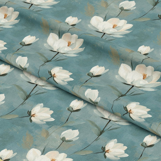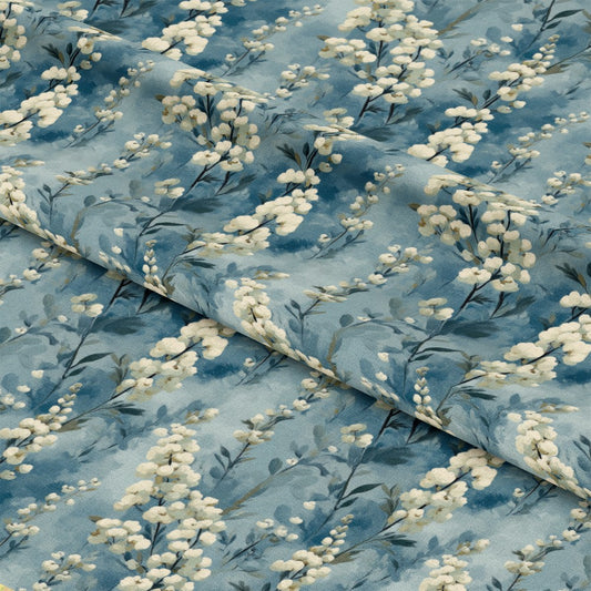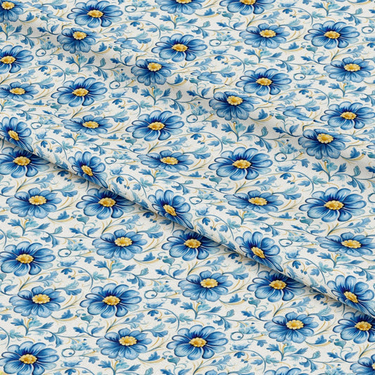 Cornflower Blue Floral Pattern 19 Quilting Cotton Fabric