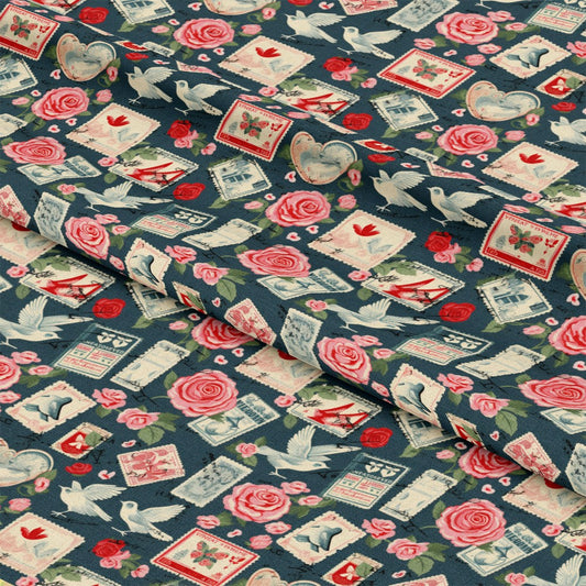 Vintage Love Stamps Pattern 8 Quilting Cotton Fabric