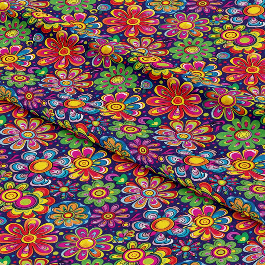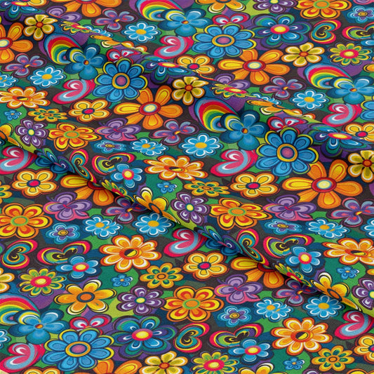 Rainbow Hippie Flowers Pattern 8 Quilting Cotton Fabric