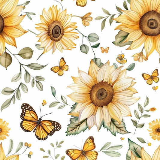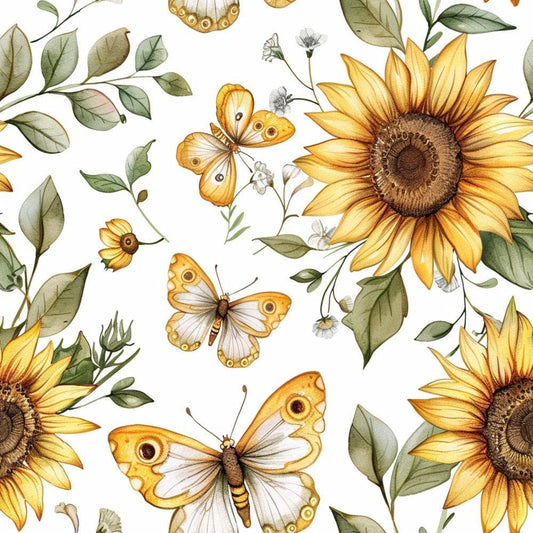 Country Sunflower Butterfly Pattern 4 Quilting Cotton Fabric