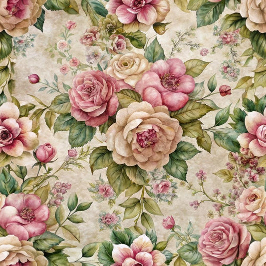 Floral Pink Cottage Gardens Pattern 11 Quilting Cotton Fabric