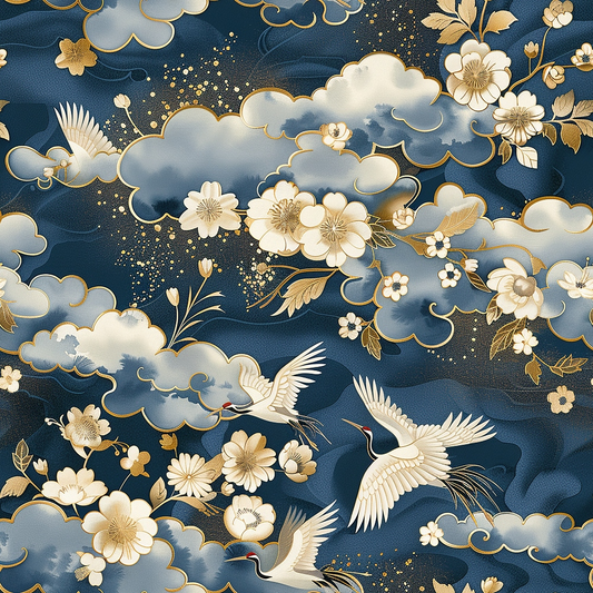 Japanese Cranes Pattern 3 Quilting Cotton Fabric