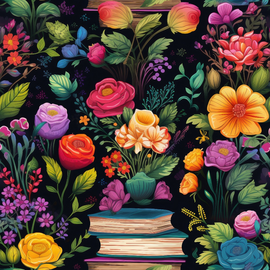 Rainbow Books and Flowers Pattern 5 Quilting Cotton Fabric