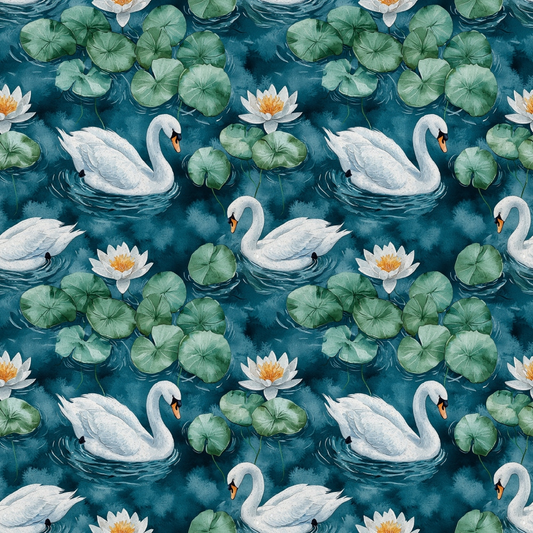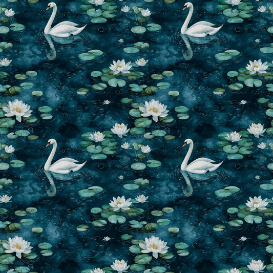 Swan in the Pond Pattern 12 Quilting Cotton Fabric