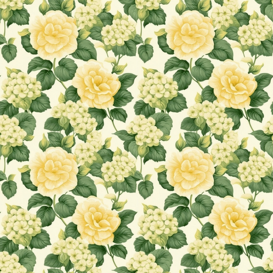 Floral Yellow Cottage Gardens Pattern 3 Quilting Cotton Fabric