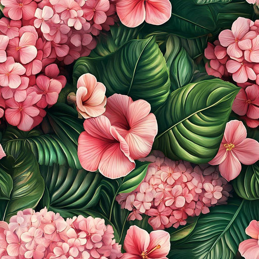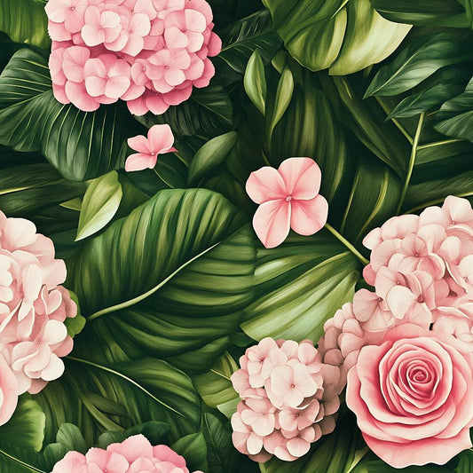 Pink Flowers and Tropical Leaves Pattern 1 Quilting Cotton Fabric