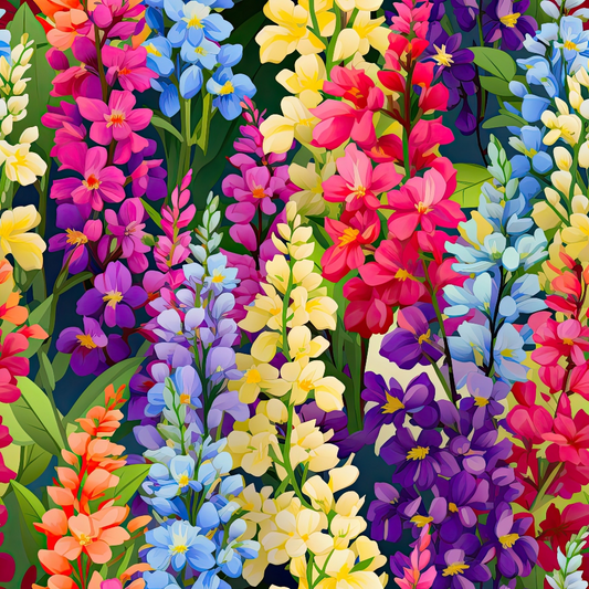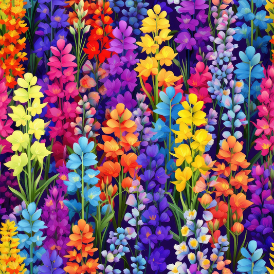 Rainbow Larkspur Flowers Pattern 3 Quilting Cotton Fabric