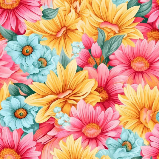 Bright Summer Blooming Flowers 3 Quilting Cotton Fabric