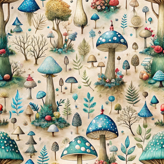 Mushroom Fairyland Pattern 1 Quilting Cotton Fabric