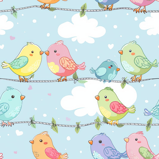 Cute Birds on a Wire Pattern 1 Quilting Cotton Fabric