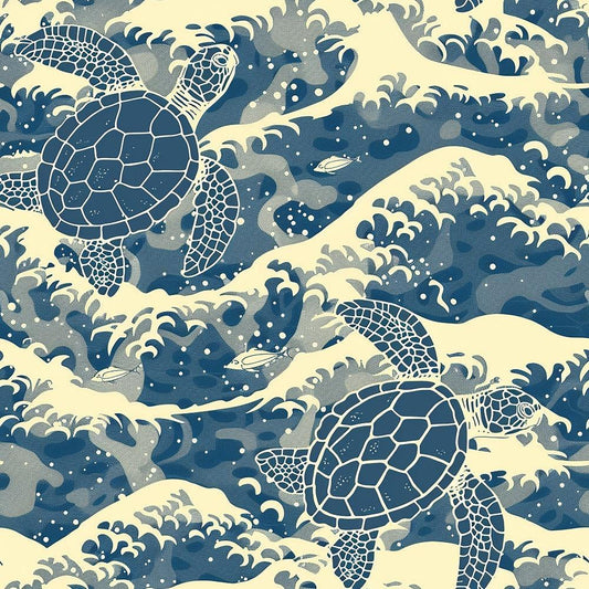 Handdrawn Sea Turtles Pattern 8 Quilting Cotton Fabric