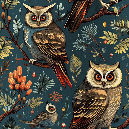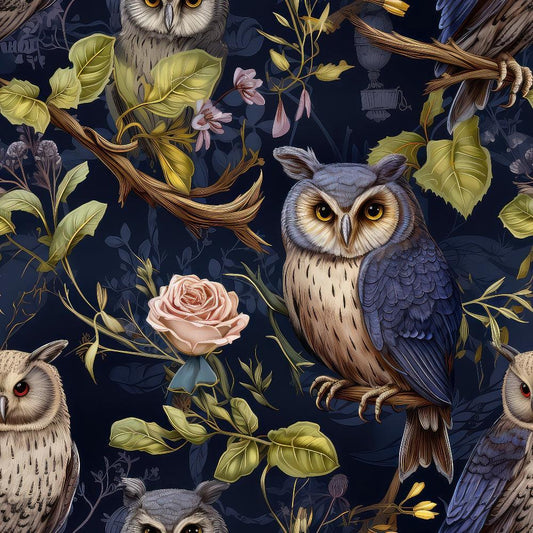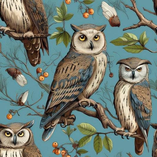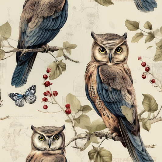 Owl Ephemera Pattern 5 Quilting Cotton Fabric