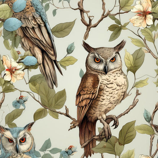 Owl Ephemera Pattern 8 Quilting Cotton Fabric