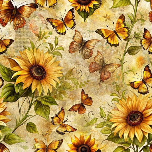 Vintage Sunflowers and Butterflies Pattern 1 Quilting Cotton Fabric