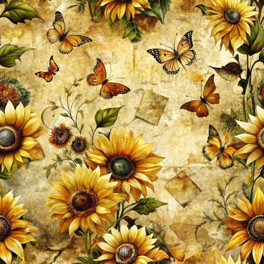 Vintage Sunflowers and Butterflies Pattern 12 Quilting Cotton Fabric