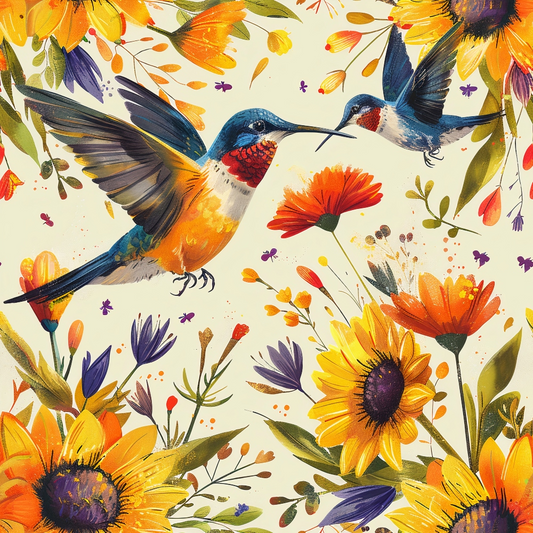 Hummingbirds in Spring Pattern 1 Quilting Cotton Fabric