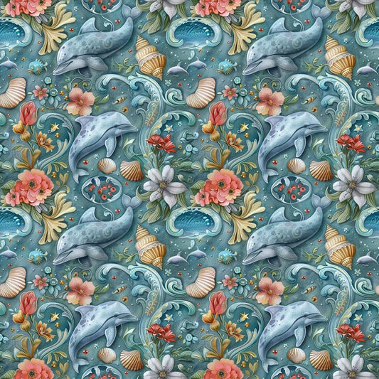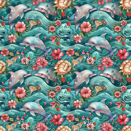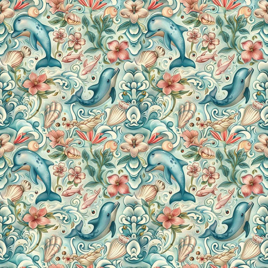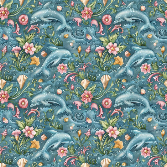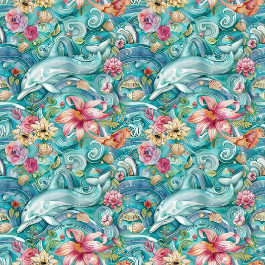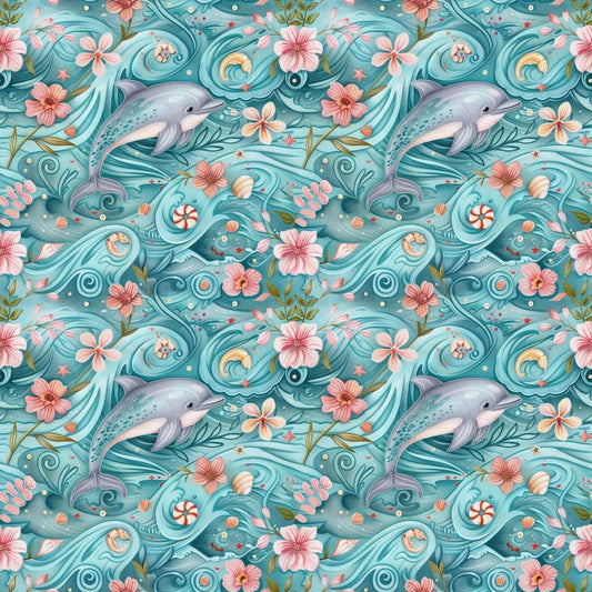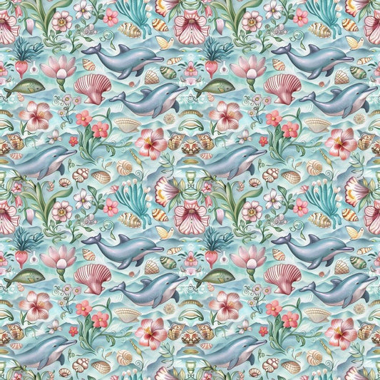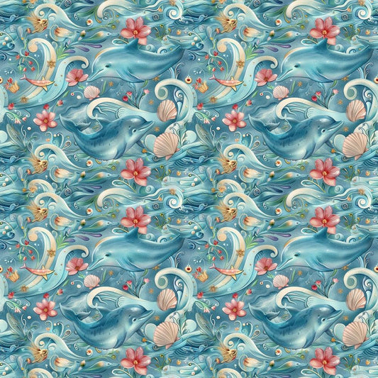 Swimming with Dolphins Pattern 1 Quilting Cotton Fabric