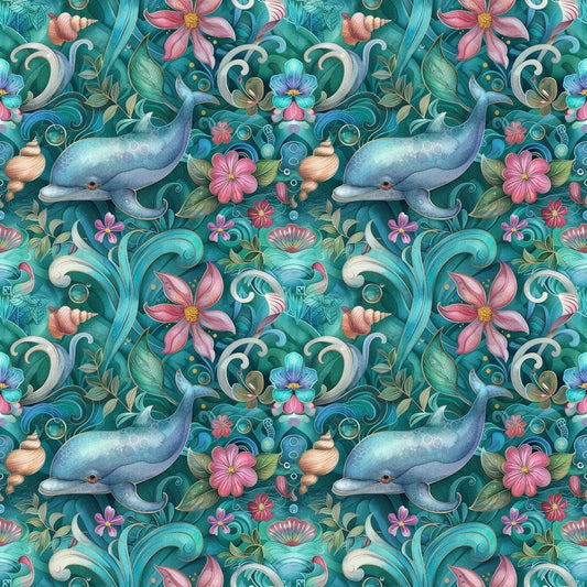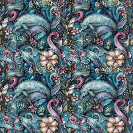 Swimming with Dolphins Pattern 2 Quilting Cotton Fabric